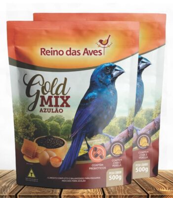 1x R$15,99 sem juros R$15,19no Pix Kit 2un Ração Azulão Gold Mix 500g – Reino Das Aves