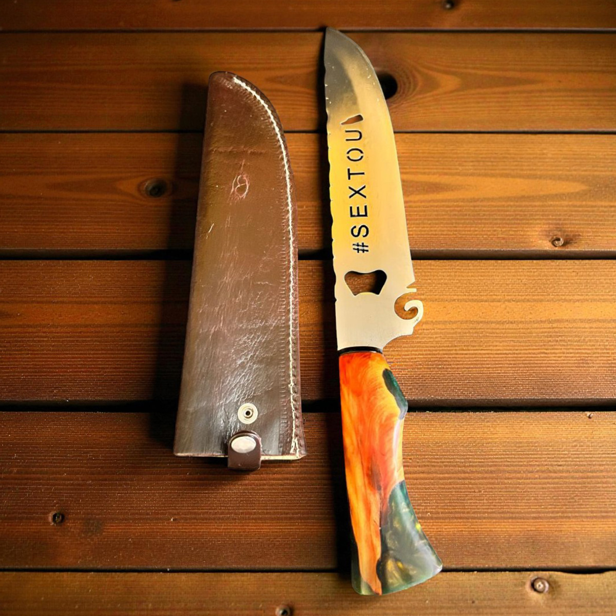 Seja o primeiro a avaliar “Faca artesanal Sextou 10 Pol Cabo Resina cabo podem variar tonalidade”