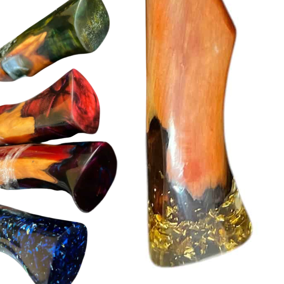 FACA PICANHEIRA NOSSA SENHORA 10" EM AÇO INOX 420C CABO HÍBRIDO – RESINA EPOXI E MADEIRAS NOBRES, COM DETALHES NO INTERIOR DA RESINA