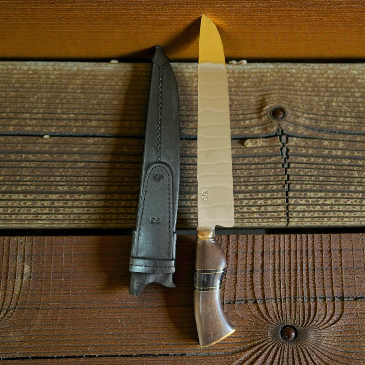 Para guardar sua faca com segurança, acompanha uma linda bainha de couro tratado sem sal.