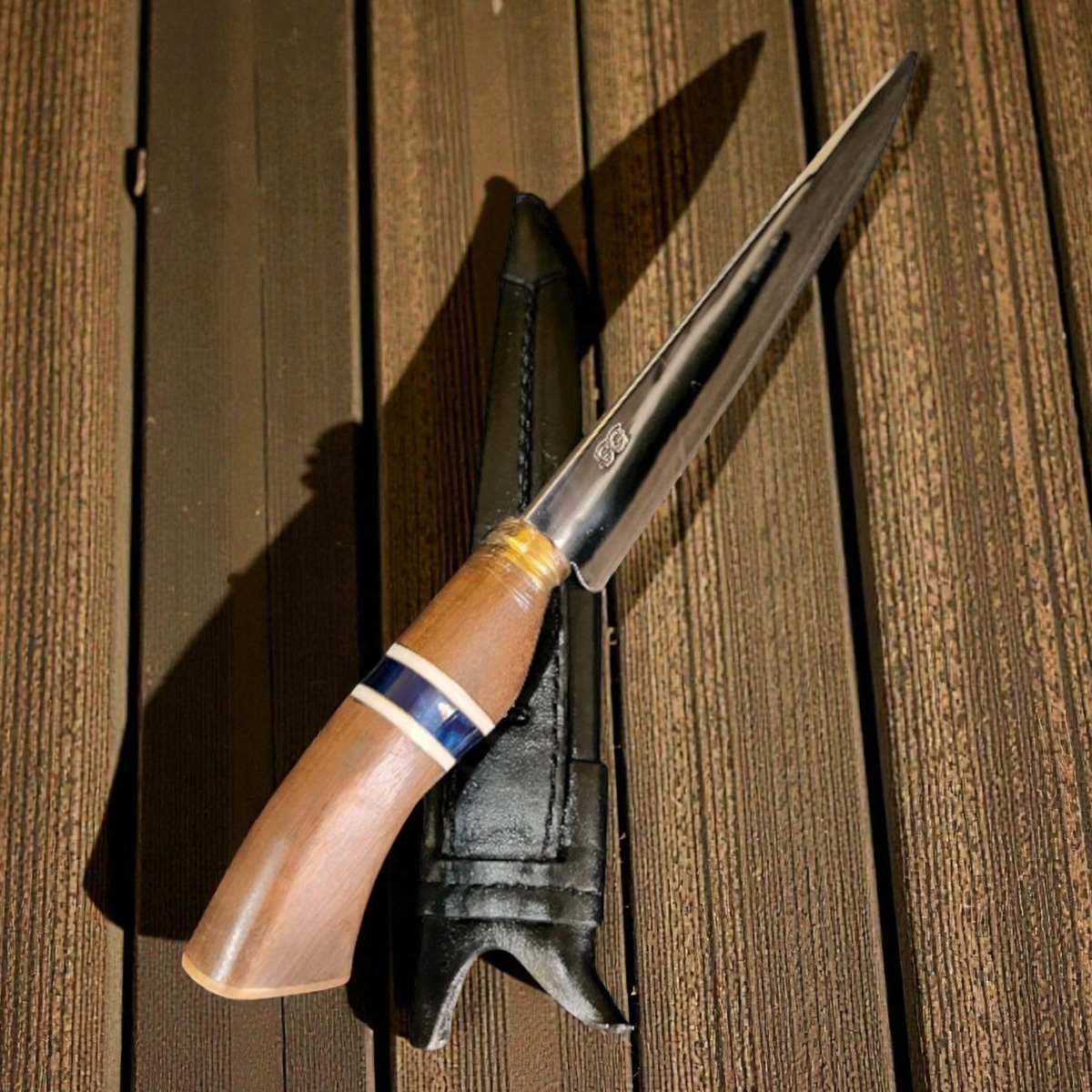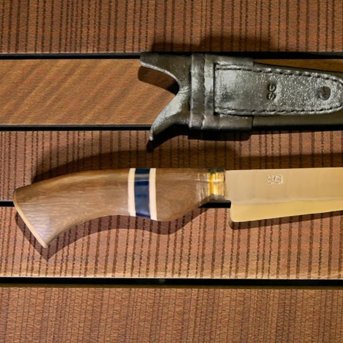 Para guardar sua faca com segurança, acompanha uma linda bainha de couro tratado sem sal.