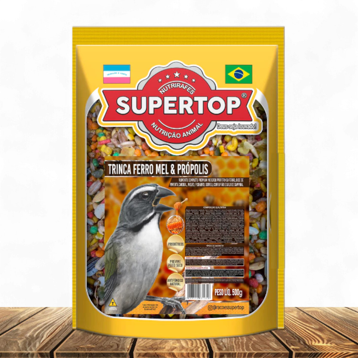 1x R$19,99 sem juros R$18,99no Pix Ração Supertop Trinca Ferro Mel e Própolis 500g